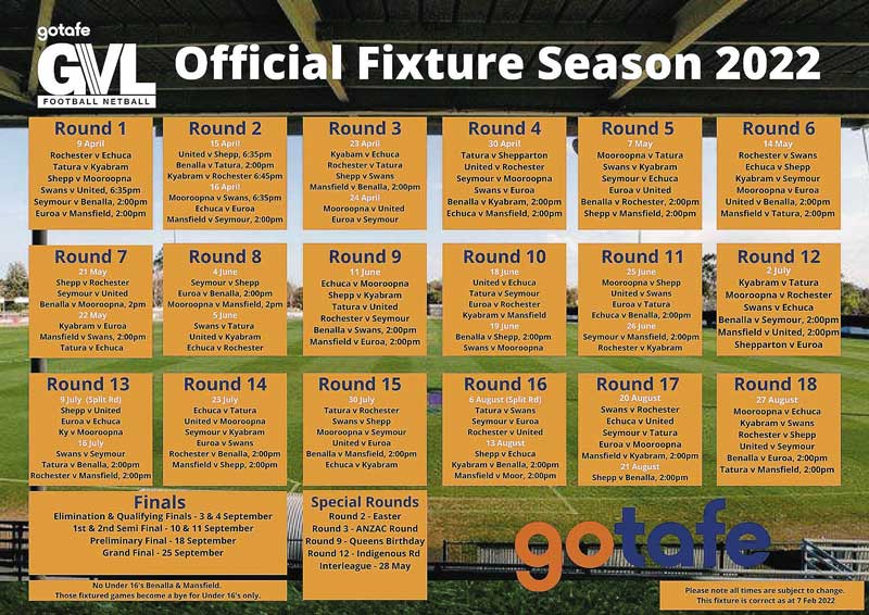 THE official 2022 gotafe Goulburn Valley League fixture has been released.