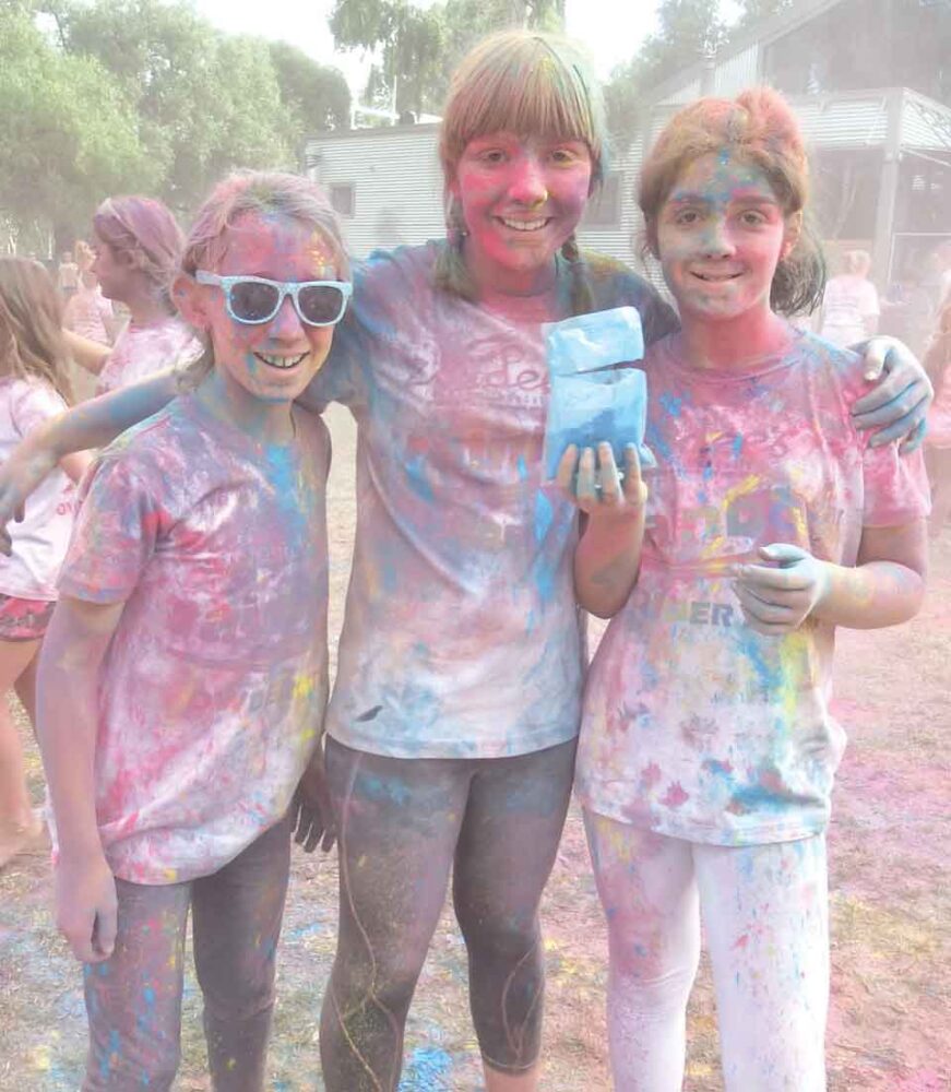 The event is a mini mud run with coloured powder at seven powder stations spread around the 3km Kids Town course, with a few pits to get wet and muddy in.