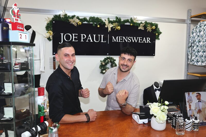 ABSOLUTELY UNMISSABLE… Joe Paul Menswear’s Boxing Day sale is an event to attend with up to 75 per cent off store wide. The perfect opportunity to upgrade your wardrobe or to get something to look your best for the season’s many social events, Joe Paul Menswear will have the perfect item to suit your style, comfort and post-Christmas budget. Pictured from left are Paul and Joe. Photo: Aaron Cordy