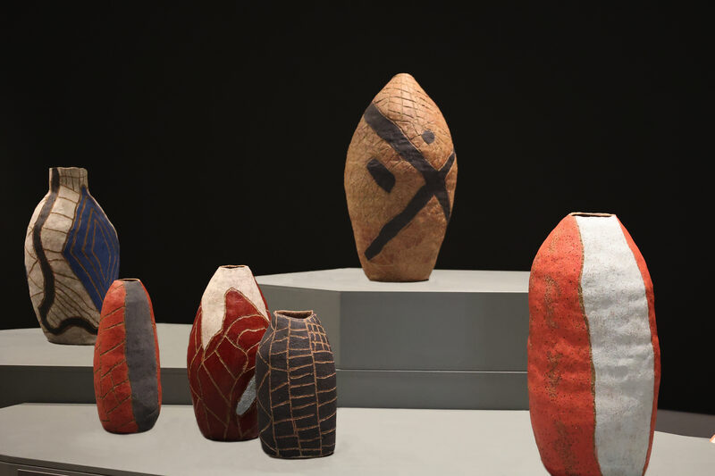 Belinda Briggs, SAM Curator – Indigenous, says of the exhibition, ‘Kunmanara Carroll’s practice spans a mere 10 years, but in the body of his clay vessels and across his mark-making are stories older than life itself. His paintings and ceramics display a masterful relationship between mind, spirit, heart and hands. Through this exhibition, Carroll sustains the cultural continuum of passing on knowledge and love of Country through paint and clay.”