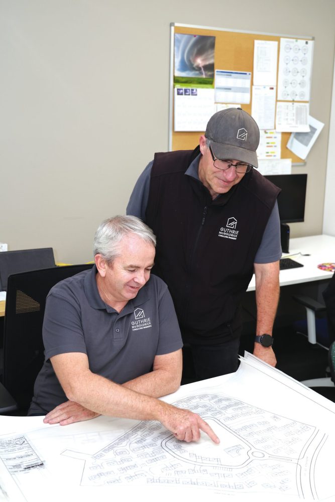 TECHNICALLY PRECISE… and results-driven, Guthrie McGoldrick Consulting Engineers (GMCE) is proud to announce a new chapter in its journey, with Principal Engineer and Director Jamie Guthrie (seated) assuming full ownership of the firm. A Chartered Engineer with over 25 years of experience leading consulting practices and delivering complex projects nationwide, Jamie is renowned for engineering solutions that balance innovation, efficiency and long-term value. Under his leadership, and with a skilled and dedicated team, GMCE remains firmly focused on the future — committed to supporting the Goulburn Valley’s growth while continuing to deliver engineering excellence across the region. Pictured alongside Jamie is Draftsperson Colin Stanyer. Photo: Emma Harrop