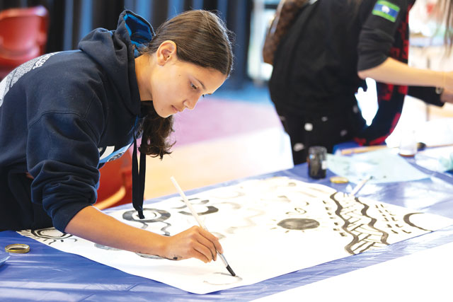Belinda Briggs, Kaiela Arts vice president and Nanyak adviser, said, “The artwork before you, wrapping around and woven throughout is a representation of who we are, where we come from and informing our visions of the future.