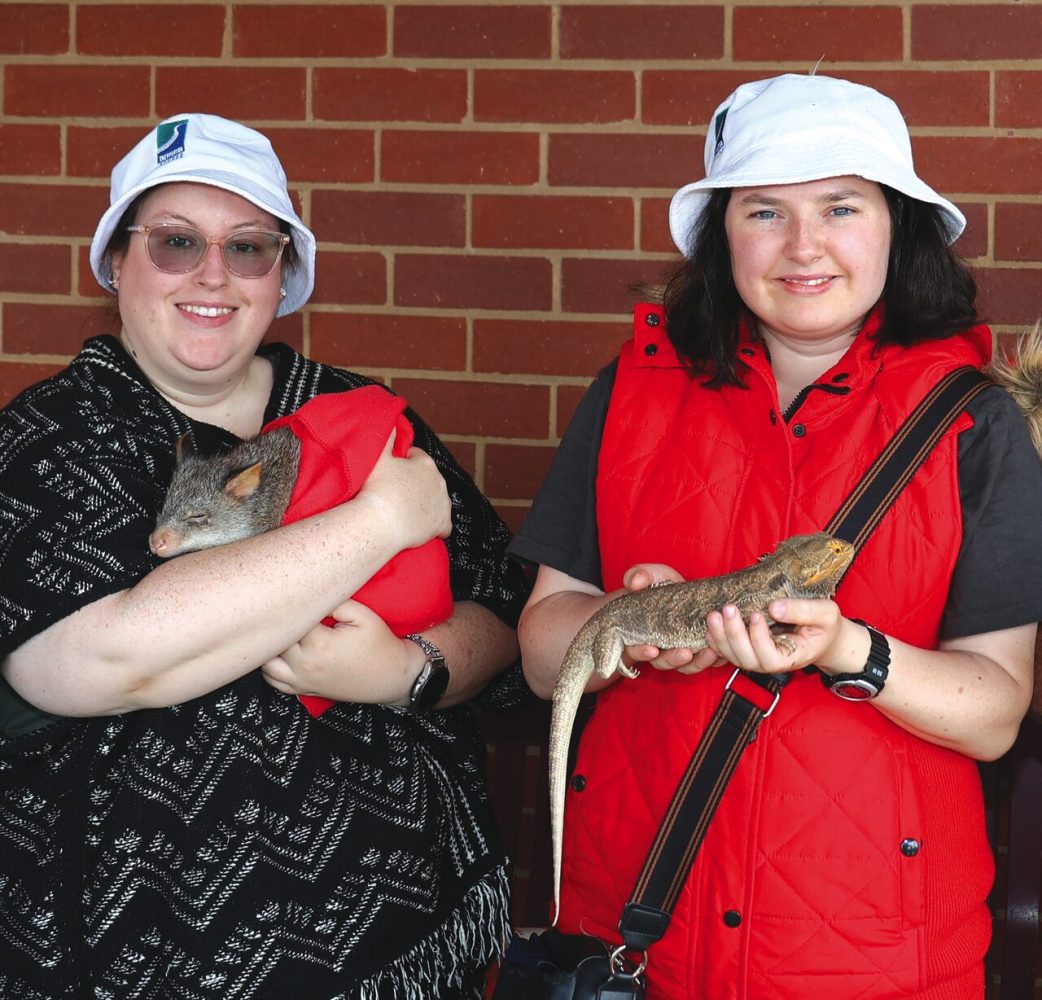 PETTING ZOO… Izzy (left) and Maddie loved making furry and scaly friends with the creatures of Tatura’s Tiny Tails. Photo: Aaron Cordy