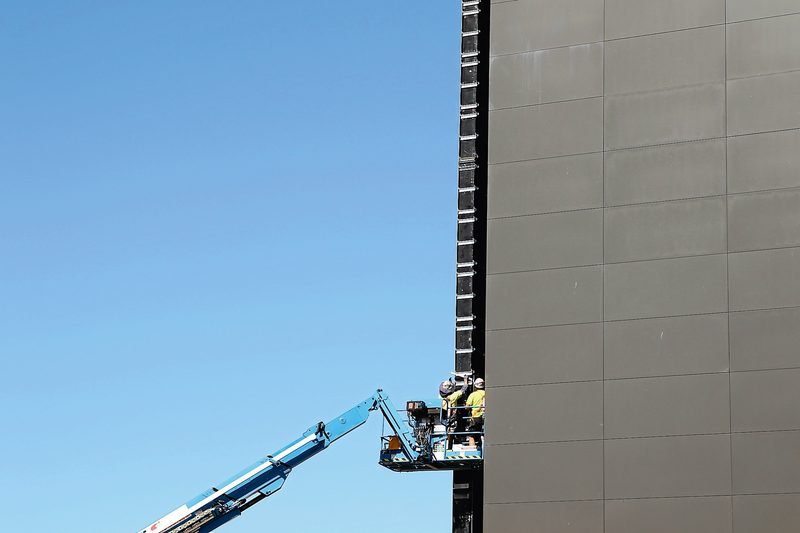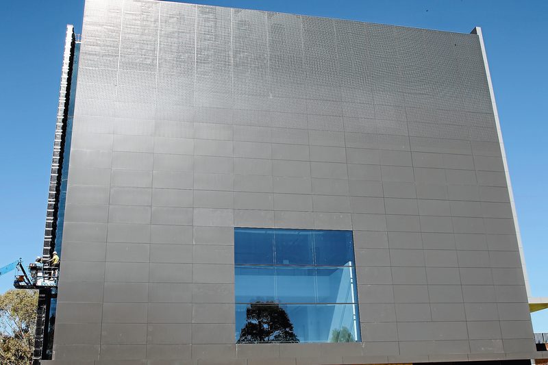 These images of the new Shepparton Art Museum (SAM) were captured on Friday morning, with work being done to the landscaping and exterior of the building.