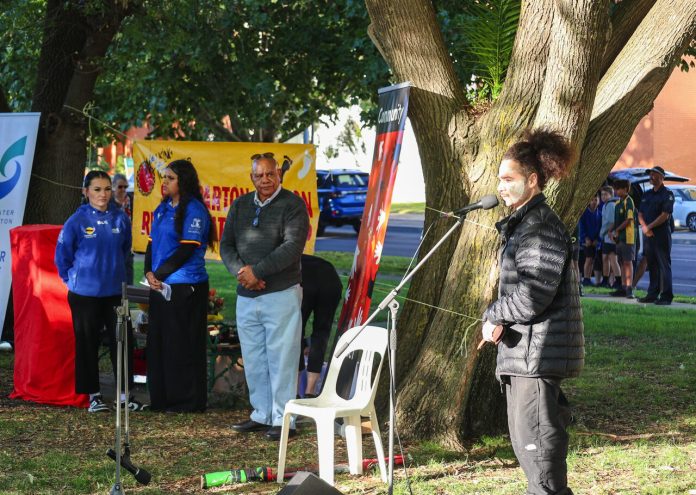 A strong crowd from community, local schools and organisations gathered on the lands and waters of the Yorta Yorta Nation at the Queen’s Garden in Shepparton, in recognition of the tragedy of the past and in hope of continuing to build towards healing those wrongs.
