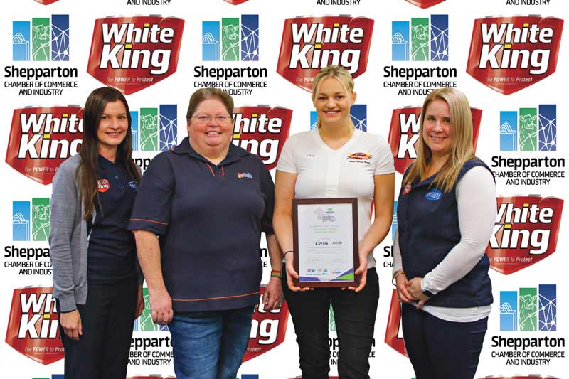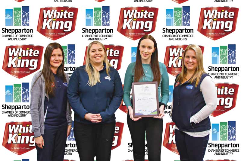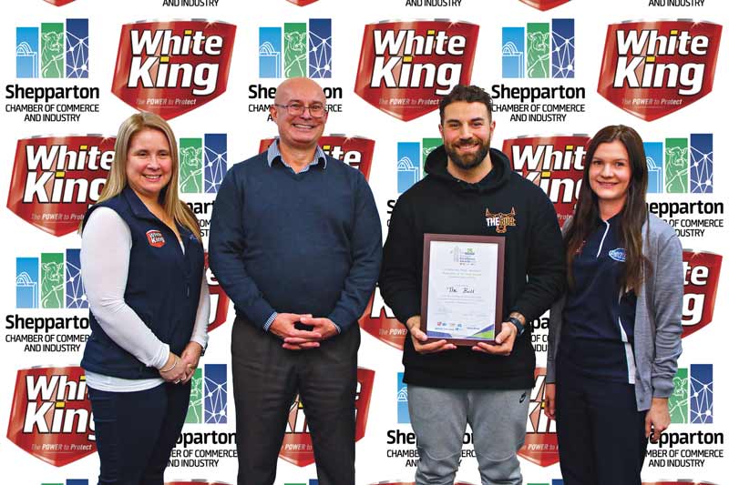 Cat 2 – Business of the Year Award: Professional Service of the Year – The Bull… from left, Beth Smith from sponsor White King – Pental, Michael Milburn from the Shepparton Chamber of Commerce and Industry, Ivan Brun from the Bull and Laura Rudolph from sponsor White King – Pental. Photo: Steve Hutcheson