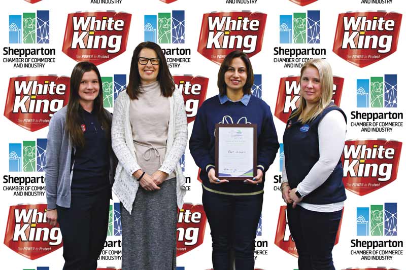 Cat 4 – Best New Business (under 2 years) of the Year Award -Fastgrowers…from left, Laura Rudolph from sponsor White King – Pental, Deb Guy-Smithor from sponsor Shepparton Business Centre, Kam Sidhu from Fastgrowers and Beth Smith from sponsor White King – Pental. Photo: Steve Hutcheson