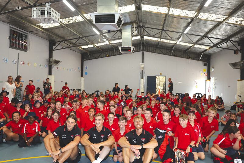 THE Essendon Bombers landed in the region on Monday to the delight of schools and local fans. Across two days they visited every school in Shepparton, Kialla, Mooroopna, Tatura and Kyabram, as well as held a welcome-to-country ceremony at Rumbalara, an Auskick Super clinic and an open training session.