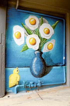 Local artist, Tank, has just completed two new street art paintings in Shepparton’s CBD. The artworks titled ‘Polyphony’ and ‘Complexity of Being’ (inset) are both large scale replicas of paintings that he has previously created. You can check them out for yourself at The Aussie Hotel.