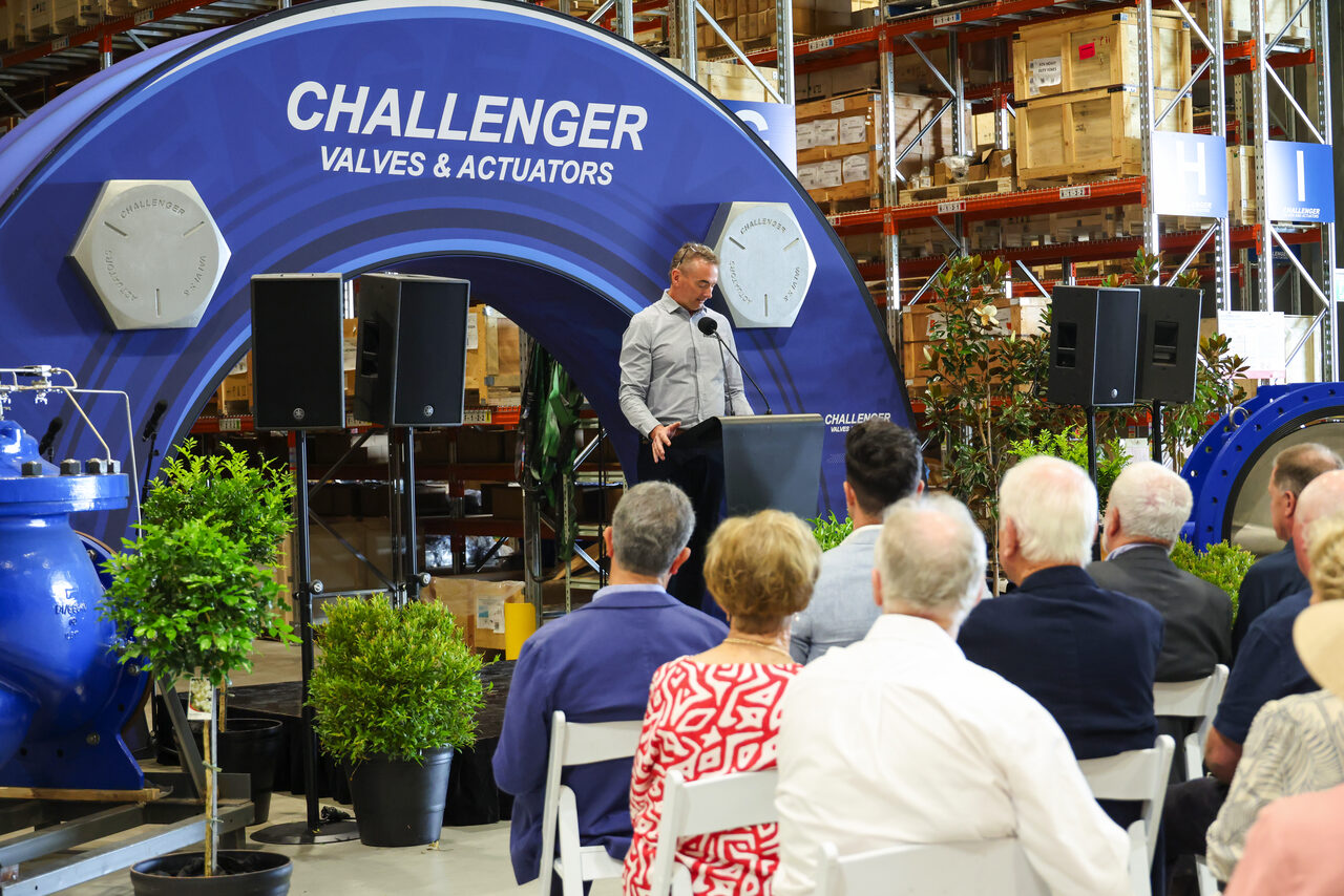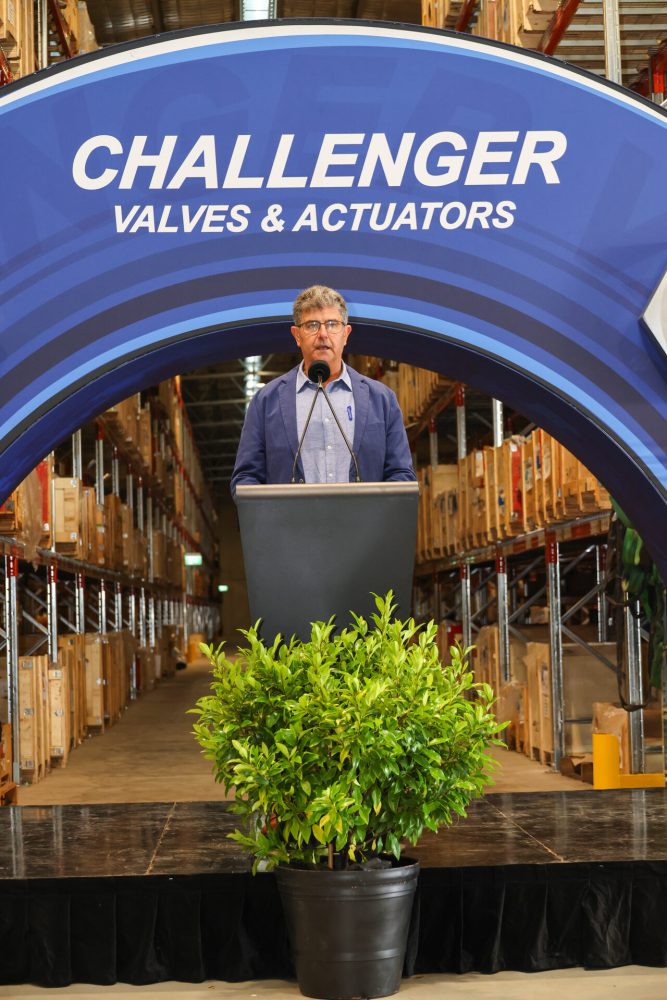 GRAND OPENING... Pictured is General Manager Kelvin Williams delivering a speech at the Challenger Valves and Actuators grand opening event on March 18, 2026. Photo: Emma Harrop