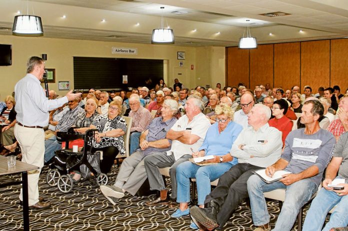 At a meeting held at the Shepparton RSL last Thursday, a room full of concerned farmers met with Inspector General of Murray Darling Basin Water Resources, Mick Keelty AO, to provide him with their concerns about the Murray Darling Basin Plan and its impact.