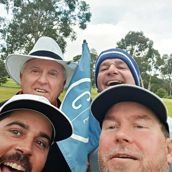 ALL THERE TO SEE… There to witness the hole-in-one action at the back left, Gary Dickason, Warren Dodd, in front from left, Nathan Wilson and hole-in-one successor, Charlie Ezard.