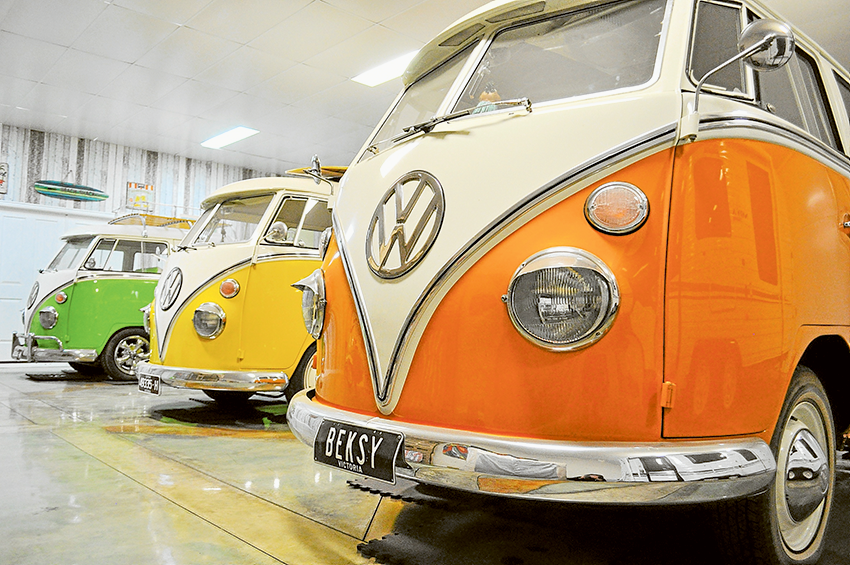 The obsession for Kombi vans arose from a similar personal appeal for the beachside lifestyle. Though located several hours from the nearest beach appropriate for a van like this, Andrew and his family have crafted an oasis in the outer farmlands of Mooroopna. Seated in one of Andrew’s prized Kombis in his beach-themed showroom, it’s not too hard to imagine the whisper of waves crashing upon the shoreline.