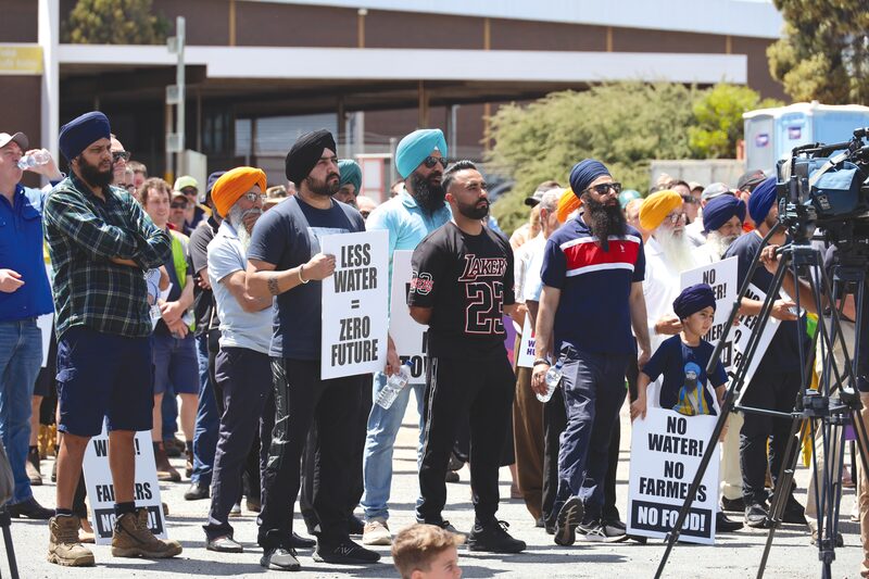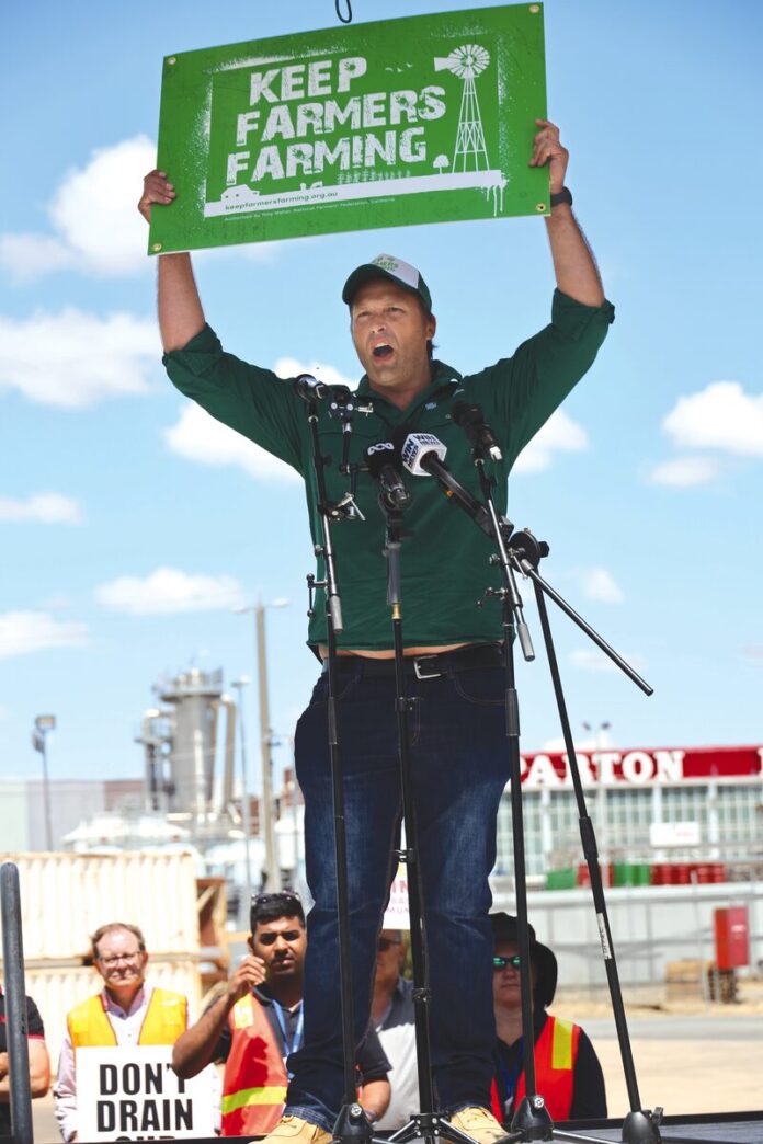 Crowds of people gathered to hear an impassioned Mayor Shane Sali, introduce Co-Chair of GMID Water Leadership Committee David McKenzie, Dairy farmer Natalie Akers, outgoing Greater Shepparton Business Network president John Anderson, Chairman of Fruit Growers Victoria Mitch McNab and a fired-up President of the National Farmers’ Federation David Jochinke.