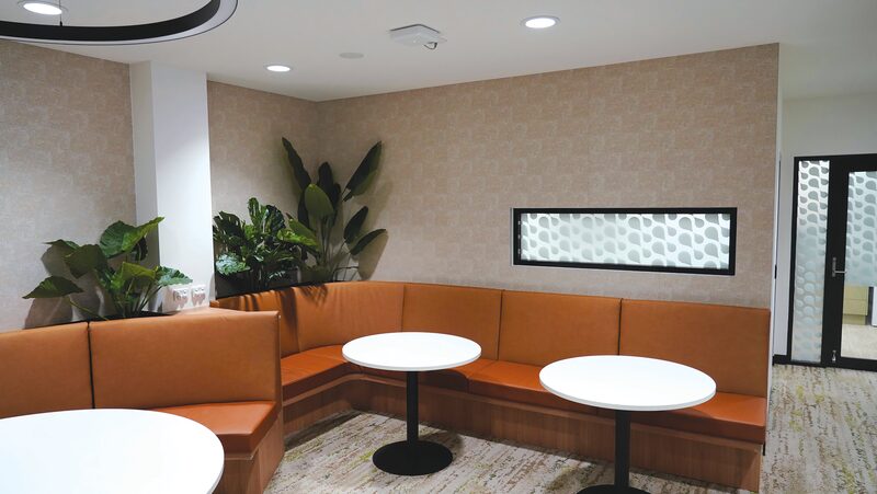 The acoustic panels incorporate a design by Wiradjuri Artist, Amanda Hinkelmann and the furniture has been procured from Winya Indigenous Commercial Furniture.