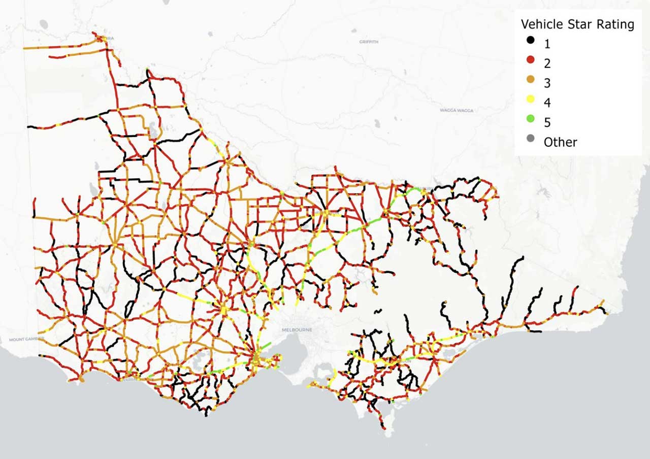 The AusRAP Star Ratings for Victorian Roads data can be viewed at vic.gov.au/ausrap-star-ratings-victorian-roads.