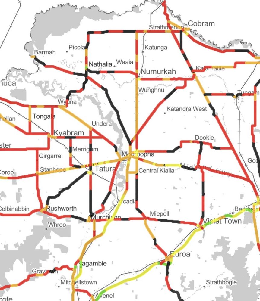 In fact, several key routes — including Barmah-Shepparton Road, Tatura-Undera Road, Euroa-Shepparton Road, Katamatite-Shepparton Road, Echuca-Mooroopna Road, Dookie-Shepparton Road and Dookie-Nalinga Road — were among those rated just one star.