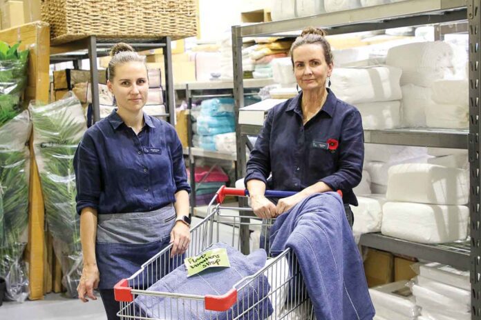 DONATING THE BASICS… Knowing only too well the damage and heart ache that floods can bring, Pillow Talk’s head-office in Queensland sent a pallet of hotel quality towels, sheets and quilt covers to its Shepparton store last week. Store manager, Janine Warner (right) and team leader, Steph Heenan were glad to call customers who they knew were in need before sending their donated stock to Council for further distribution. Photo: Natasha Fujimoto