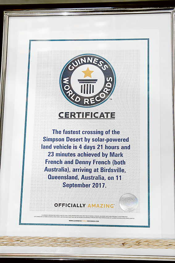 Power from the sun to drive a vehicle remains elusive if you need to contemplate long distances. Such was the mission set in September, 2017 when Mark and his wife Denny French drove a Suzuki four wheel drive across the Simpson Desert in Queensland, a distance of 378 km in four days, 21 hours and 23 minutes setting a Guinness world record in the attempt.