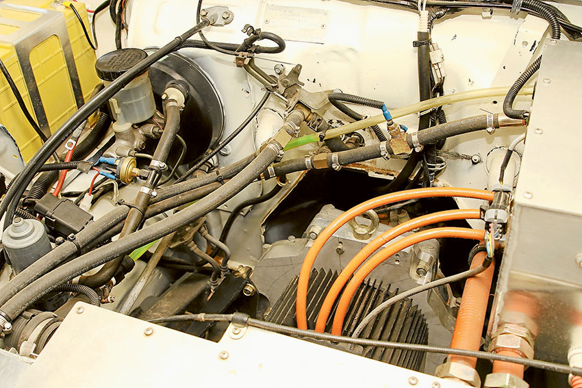 The Suzuki had its motor removed and a 17 kW, three phase electric motor was installed in its place. The electric motor was adapted to the original Suzuki drivetrain.
