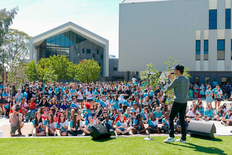 Before the exclusive lunchtime concert for staff and students, Isaiah took part in motivational workshops with students. These activities made up a series of events over Harmony Week that incorporate song, dance, sport and more to represent and celebrate the college’s First Nations students and families, and the school community who come from Africa, Asia, Europe and Pasifika.