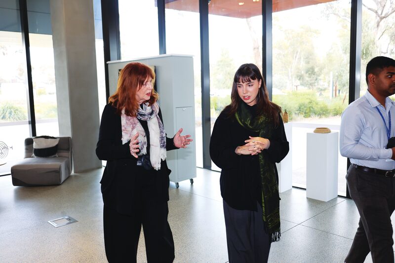 GOVERNOR VISIT… Her Excellency Professor the Honourable Margaret Gardner AC, Governor of Victoria, visited Greater Shepparton last week. Touring Kaiela Arts, she was impressed with the quality and connection to country displayed in the art. Pictured is the Honourable Margaret Gardner AC, with Kaiela Arts Curator and Gallery Manager Chloe Jones. Photo: Aaron Cordy