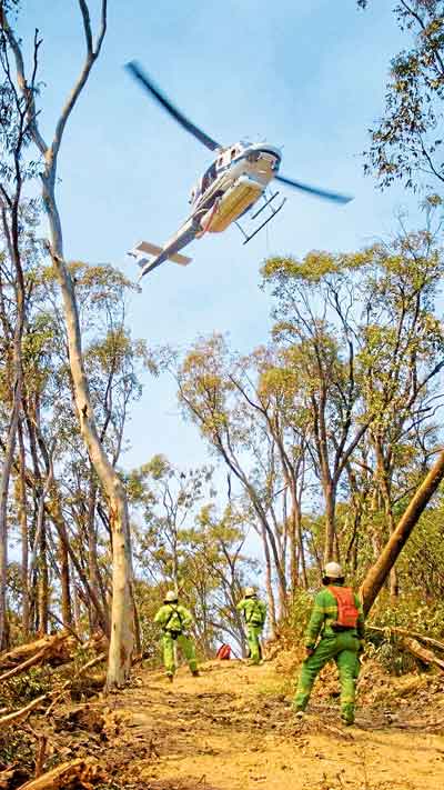 The dangers of fighting fire is ever present when doing so in the field at ground level, for a team of extremely fit young men working with Forest Fire Management at the Department of Environment, Land Water and Planning, (DELWP) their job is magnified several times by the need to travel by helicopter to new fires, generally located in remote and accessible forest points throughout the state and then rappel down a rope from up to 100 metres above the ground.