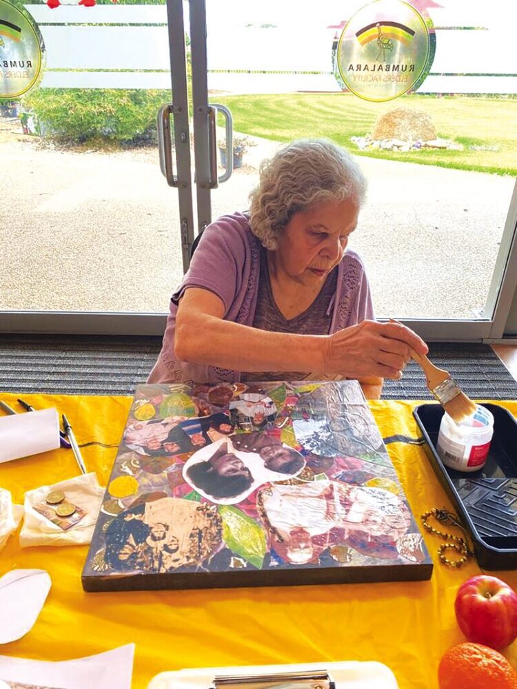 Elders are the backbone of Indigenous communities, they are cultural knowledge keepers, grandparents, activists and leaders whose strength has ensured First Nation’s survival over many generations. Elders keep culture, Country, language, and family, strong and connected. They nurture identity, pride, wellbeing and belonging and encourage intergenerational learning. Weekly sessions at REF and visits to Kaiela Arts provide time and space for Elders to connect, yarn, reminisce, share stories and self-determine expression through different creative mediums including painting, drawing, ceramics, crafts, photography, digital recordings, music and language. Kaiela Arts are working with the Elders to develop legacy creative works that capture their important memories and stories for future generations – honouring, celebrating and expressing pride in their lives and contributions. To learn more about Rumbalara Aboriginal Co-Operative, and their services including the Elders Facility, visit rumbalara.org.au/ or phone 5820 0000.
