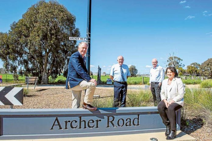 NEW DEVELOPMENTS… Kevin Hicks Real Estate director, Kevin Hicks, land sales specialists, Des O’Shea and Terry Shiels, and residential sales specialist, Julie Ryan at Archer Road in east Shepparton. Photo: Supplied.