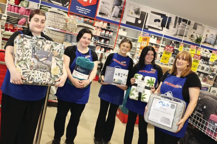 BIG SAVINGS… Don’t miss Shepparton Spotlight’s VIP Day this Thursday if you want to snag a bargain. 30 per cent off full priced items storewide. Pictured from the Spotlight Shepparton team are Tahlia Ford, Brianna Caverzan, Indi and Skylar Norton and Tania Durston. Photo: Deanne Jeffers