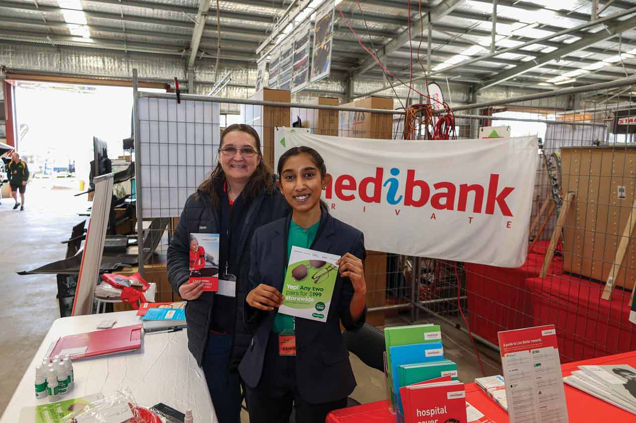 HEALTHY TRAVELLERS... Medibank wellness adviser Sharon Connolly and Specsavers optical adviser Vaaisshnavi Saravanaumar, promoting good eye health at the Expo. Photo: Deanne Jeffers.