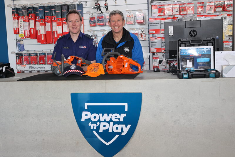 20 NEW… Husqvarna electronic chainsaws will be carving it up throughout the Goulburn Valley with the CFA, thanks to the support of Power n’ Play on Numurkah Road. With the aid of new grants, CFA district 22 (encompassing Cobram to Seymour, and across from Dookie to Merrigum), has been able to update and replace petrol chainsaws with eco-friendly electronic models in their light vehicle fleet. Pictured is CFA member, Brandan Reilly and Power n’ Play, Mike Scandolera. Photo: Emma Harrop