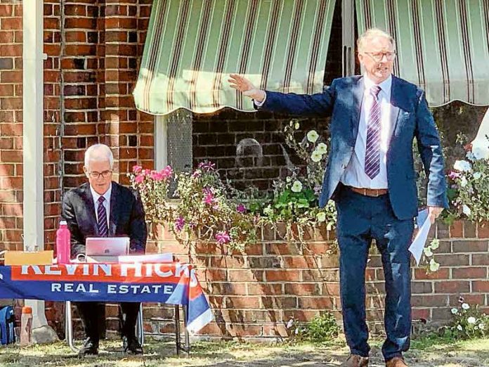 More than 100 people turned out to a pair of auctions on Shepparton’s Rea Street on Sunday. A unique art deco brick heritage home on a huge 1,817m2 block at 50-52 Rea Street was passed in at $650K and is being negotiated with several interested buyers. Next door, at 54 Rea Street, a charming weatherboard went under the hammer by agent Kevin Hicks of Shepparton’s Kevin Hicks Real Estate (pictured) with Kelvin Maude assisting, selling comfortably over reserve. The auctions, which were also attended by online buyers, shows the strength of Shepparton’s real estate market. According to the REIV, the median sale price for houses in Shepparton has risen by 11.5 percent in the last quarter alone, well above the regional Victorian average increase of 5.1 percent.