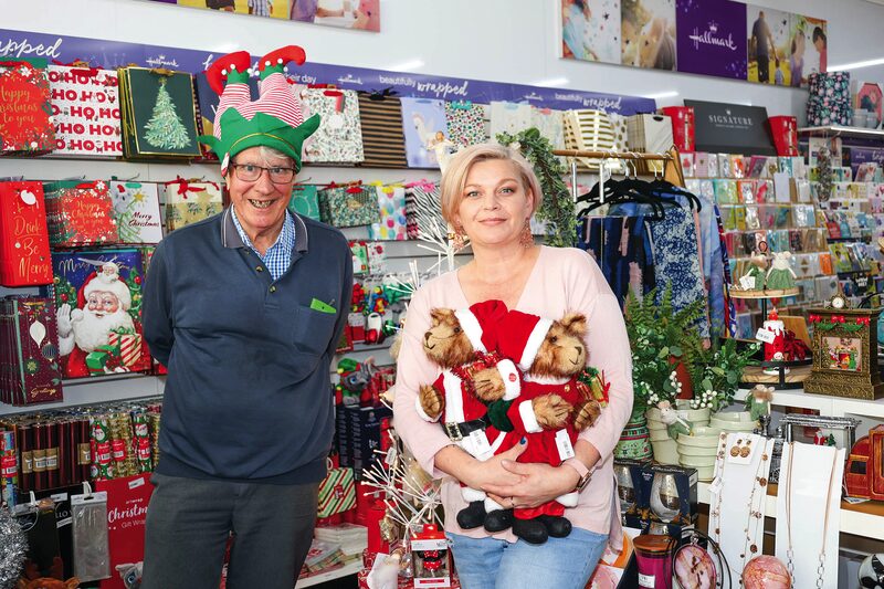 SOMETHING FOR EVERYONE…Finding the perfect card and present for someone you cherish is easy when you visit the friendly team at Focus Cards and Gifts. Stocking a large range of Hallmark, Henderson and other branded cards, Focus Cards and Gifts are also stockists of a range of Australiana-themed cards and presents, perfect for sending to loved ones overseas. Focus Cards and Gifts proprietor Peter Dunbabin and proprietor Shelley Culhane. Photo: Stephanie Holliday