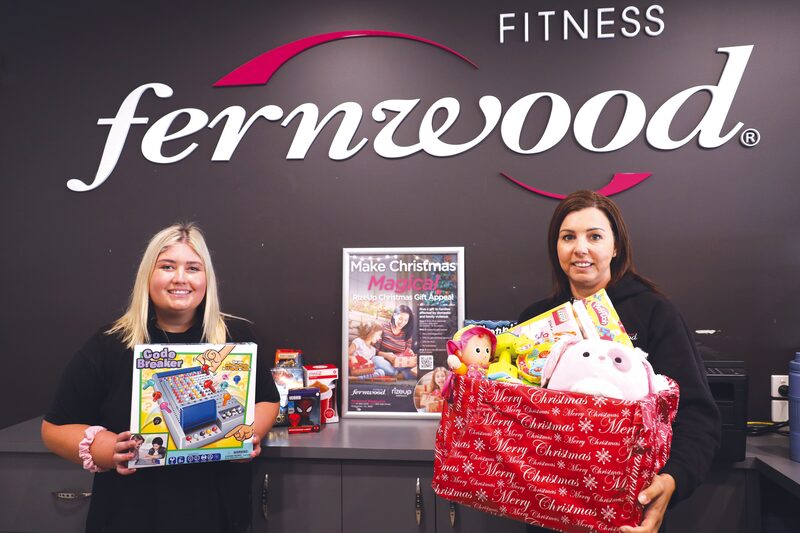 MAKING A DIFFERENCE AT CHRISTMAS… Fernwood Shepparton is making a heartfelt difference in the lead up to this year’s festive season partnering with RizeUp Australia for its annual Christmas Appeal. RizeUp is dedicated to providing support to families affected by domestic violence and from October 28 to December 10, Fernwood is collecting unwrapped gifts for children and mothers from the community to help make Christmas brighter for those individuals most in need. Pictured from left is Taniesha and Dani from Fernwood Fitness Shepparton with some of the donations that have been generously received so far. Photo: Emma Harrop