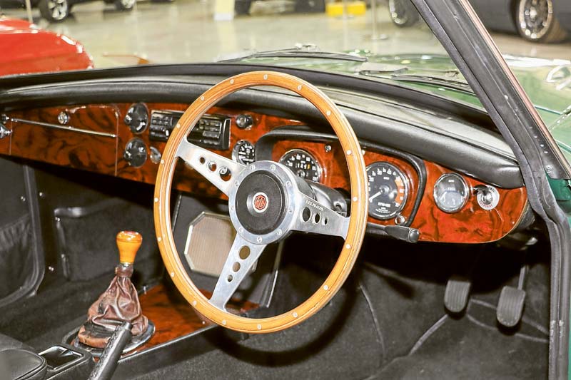 It had different brakes from the MGB. Fitted with 15-inch wheels with Pirelli Cinturato tyres, a lower geared rack and pinion and special torsion bar suspension with telescopic dampers.