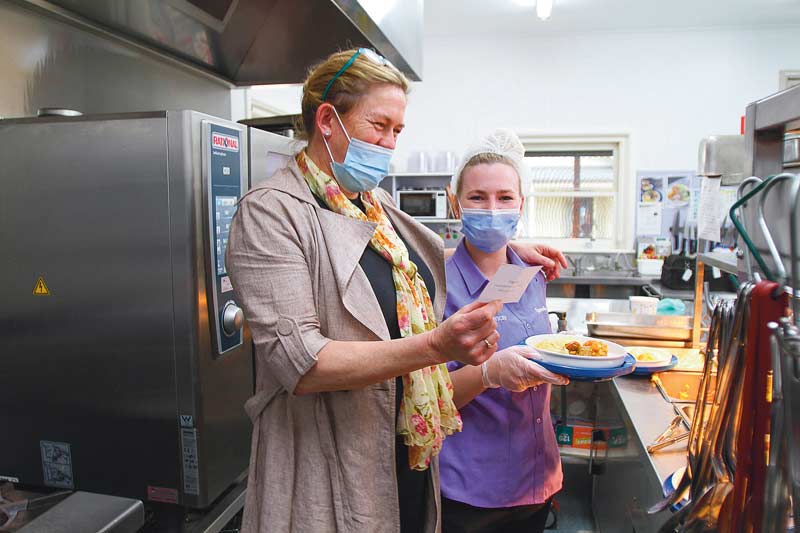 WINNER OF THE MONTHLY STAFF AWARD… CEO Bronwyn Beadle tells Chef Angel Manneken she is this month’s winner. Photo: Steve Hutcheson