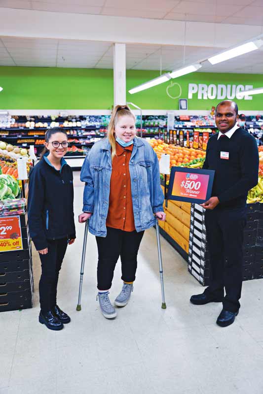 Katherine Cahill was chuffed she had won after shopping at IGA. She is planning on getting herself some new crutches with the money.