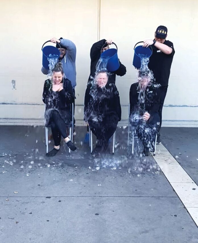 Harnessing a robust staff spirit and eager to honour a colleague who succumbed to the disease in Echuca last year, Liquorland Shepparton South took just eight days to raise a target of $2,000 for MND, perhaps not surprising when it was store manager, Leonie Mullane who first put up her hand for an icy dousing to reach this target.