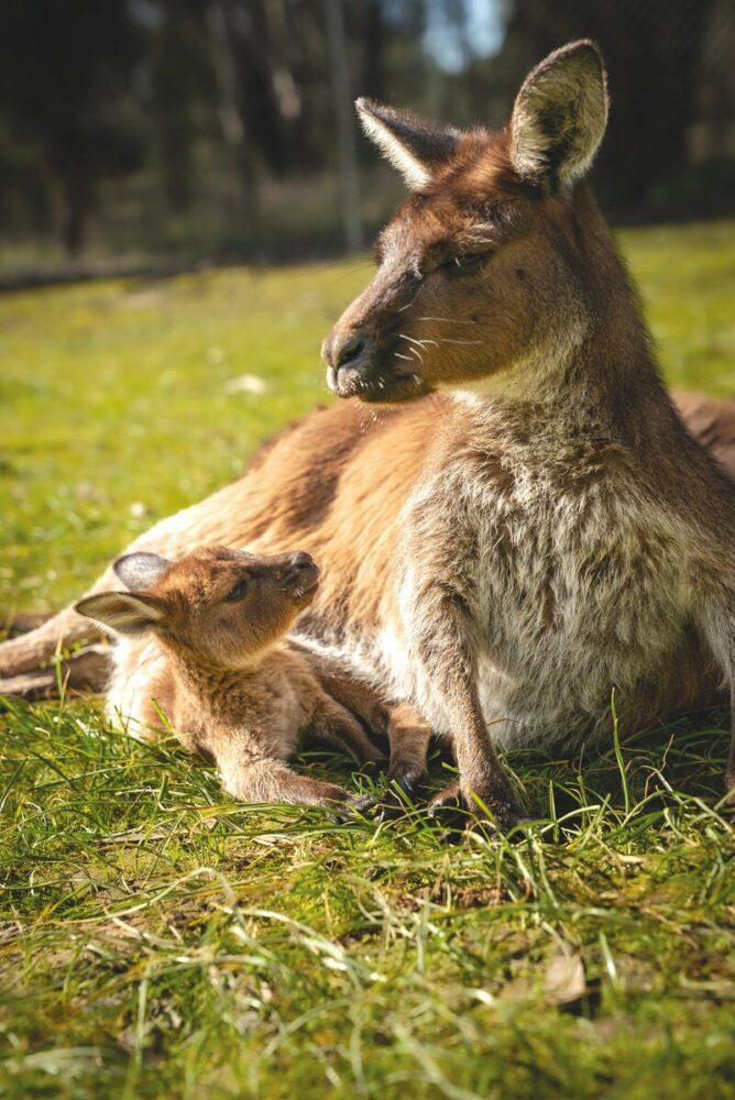 Of the two closely related sub-species, Kangaroo Island joeys tend to reach independence earliest at approximately eight months old, while Eastern Grey kangaroos may take slightly longer before making the leap. Kangaroo Island kangaroos are a relatively small subspecies, known for their long eyelashes and easy-going temperaments.