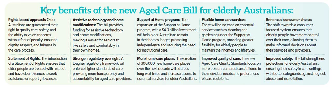THE passing of the long-awaited and much necessitated Aged Care Bill in the Australian Senate on November 25 marks a significant moment in the country’s aged care sector. Promising to transform the quality and accessibility of care for older Australians, the new Bill addresses decades of underinvestment and criticism in the sector as well as responds to key recommendations from the Royal Commission into Aged Care Quality and Safety.