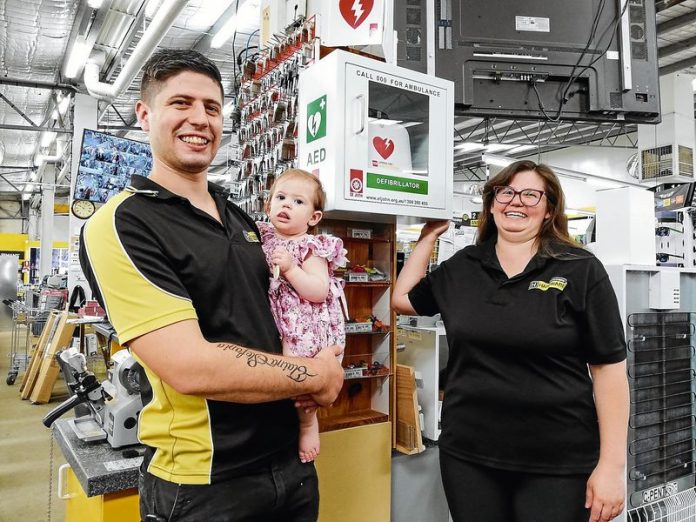 Joey and April Campanelli, the couple in charge at Mooroopna Hardware, recently installed an automated external defibrillator (AED) with the cost outlaid by store owner Allen Hunter, should anyone in store or in the community require emergency first aid.