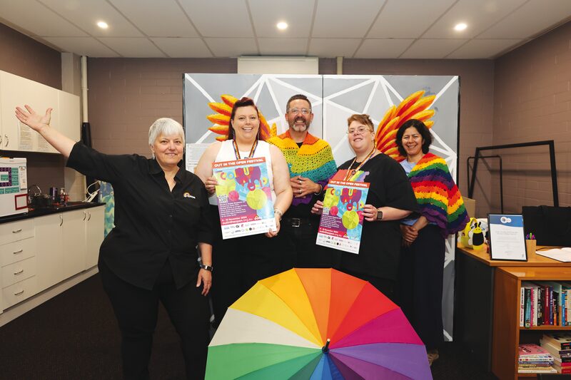 COLOUR YOUR WORLD… OUTintheOPEN Festival is back on November 6-10, and this year’s theme, ‘Colour My World’ is set to showcase the joy, pride and contributions of the LGBTIQA+ community. Pictured at the GV Pride Hub is Deb Chumbley, Georgie Poort, Damien Stevens-Todd, Jacq Kiss and Diana F. Padron N. Photo: Deanne Jeffers