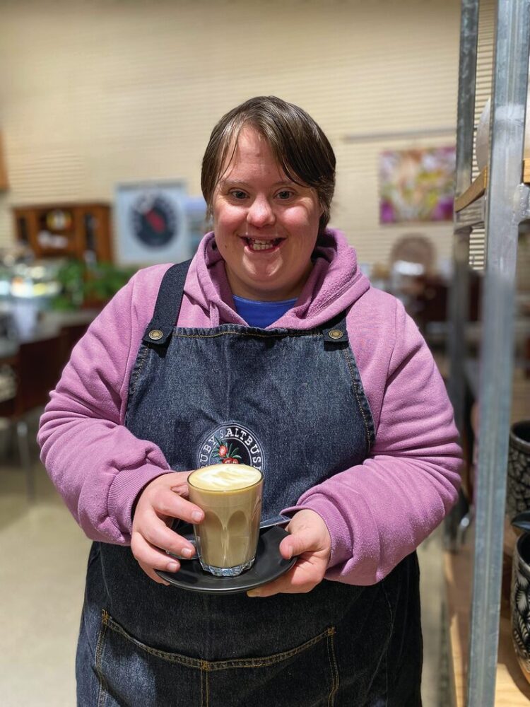 COFFEE CULTURE… ConnectGV’s Café Culture program provides training opportunities for people living with disabilities in the hospitality sector. Pictured is supported employee Melinda Bohun. Photo: Supplied