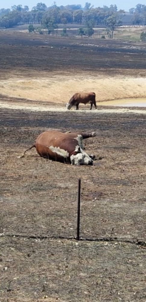 As many as 100,000 sheep and cattle perished or had to be put down following the fire. Photo: Supplied
