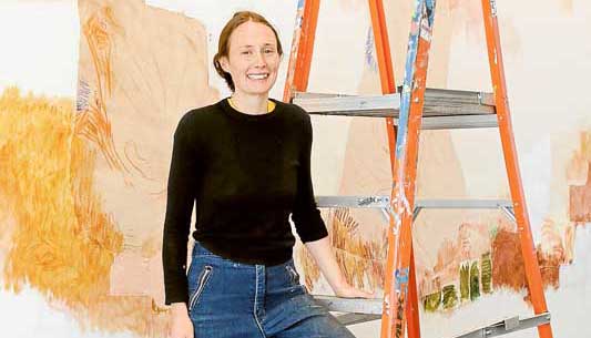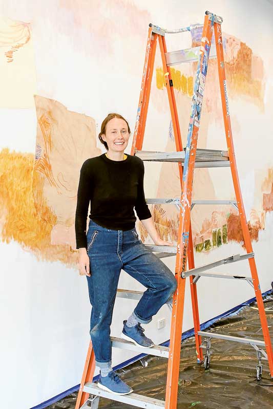 Jahnne Pasco-White is the artist who has been commissioned to produce the next Drawing Wall. From Chewton in Victoria, she often works with the re-purposing of previous works, and incorporating organic materials and pigments drawn from natural matter alongside the traditional medium of acrylic paint.