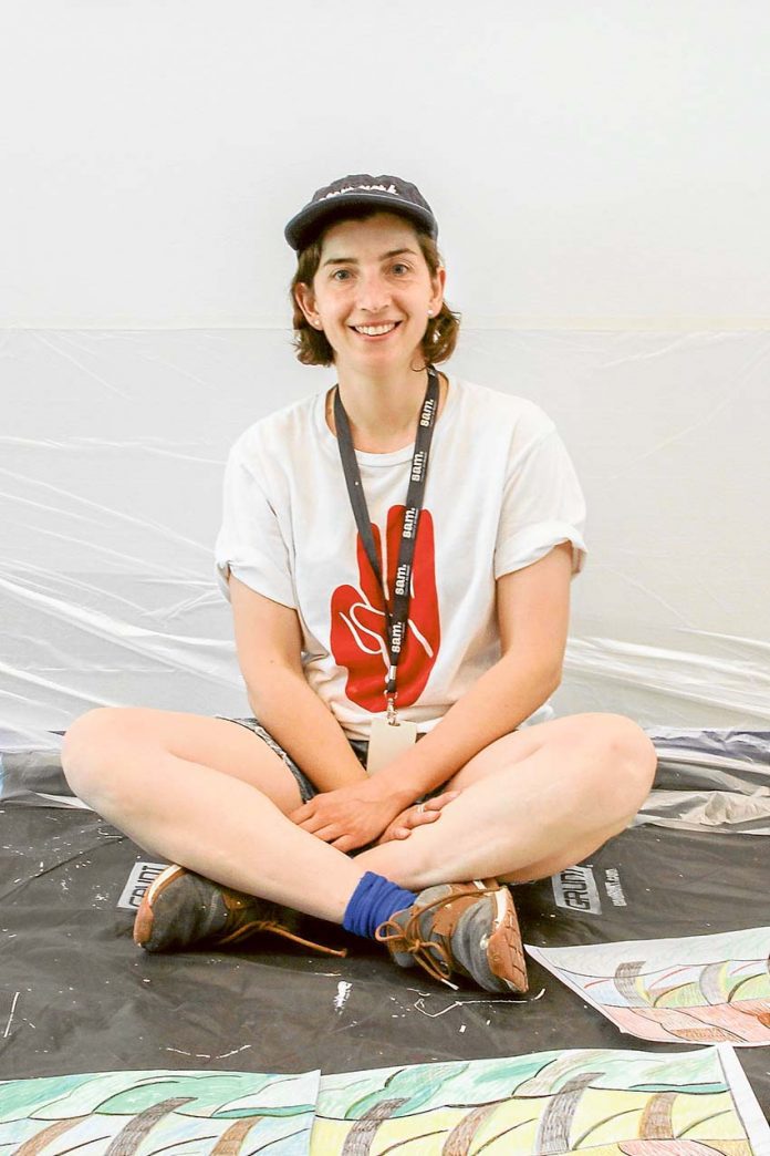 WORKING THROUGH THE PROCESS… Artist, Emily Ferretti looks over her sketches for the wall installation. Photo Steve Hutcheson