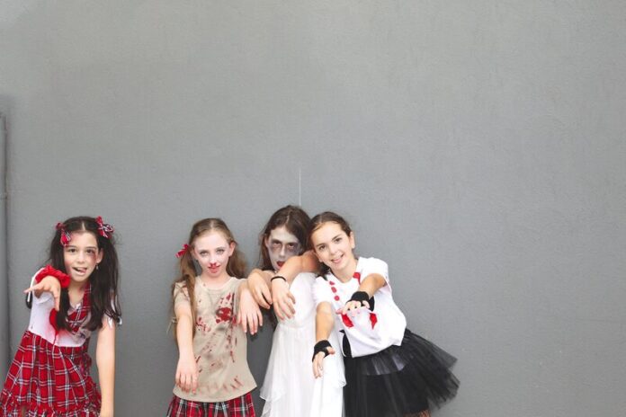 THRILLING ZOMBIES… Melah Sular, Lylah Megee-McCabe, Lexi Cordy and Macie Chapman of Orrvale Primary School were at their scary best for the end of year school concert. Photos: Aaron Cordy
