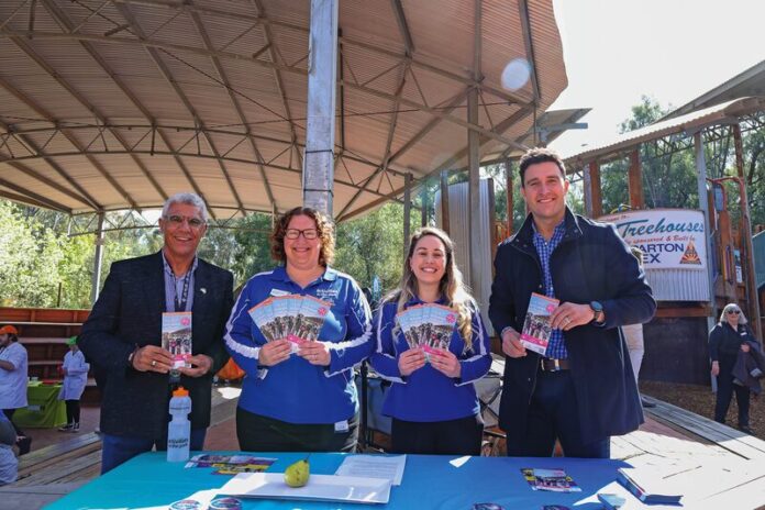 MOVE, PLAY, EXPLORE… With free and low-cost activities provided by Activities in the Park. Pictured are Greater Shepparton City Council’s Cr Greg James, healthy communities officer Carmen Nicholson, projects support officer Kellie Smith, and mayor Cr Shane Sali. Photo: Deanne Jeffers