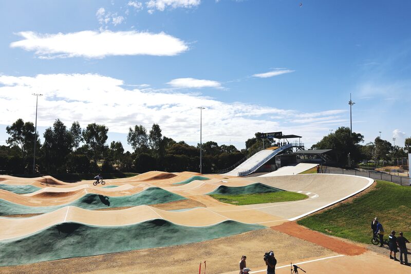 The project has delivered a new two-storey pavilion that will give spectators better views of the BMX track and serve as a new hub for events and community gatherings. The new pavilion provides accessible and all gender toilets, meeting space, storage, a first aid room, catering facilities, a flexible event space and an outdoor undercover viewing area.